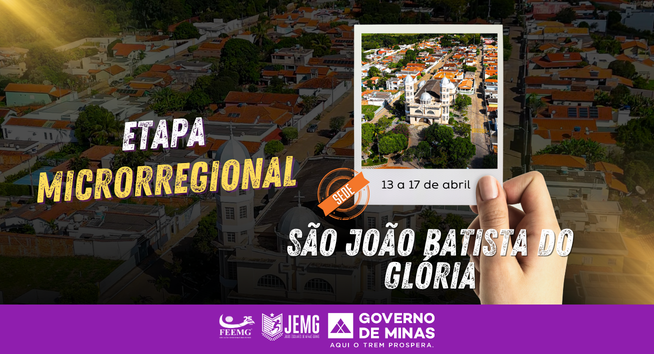 Nesse cenário de natureza, cultura e sabores, a cidade é sede da etapa microrregional do JEMG/2026, de 13 a 17 de abril, recebendo estudantes-atletas com alegria, energia e toda a hospitalidade mineira. Sejam todos muito bem-vindos a São João Batista do Glória, um lugar onde a natureza encanta, a cultura inspira, o esporte transforma e o sabor conquista.