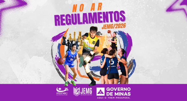 Já estão disponíveis o Regulamento Geral e os Regulamentos Específicos das modalidades de basquetebol, futsal, handebol, voleibol e xadrez do JEMG/2026.